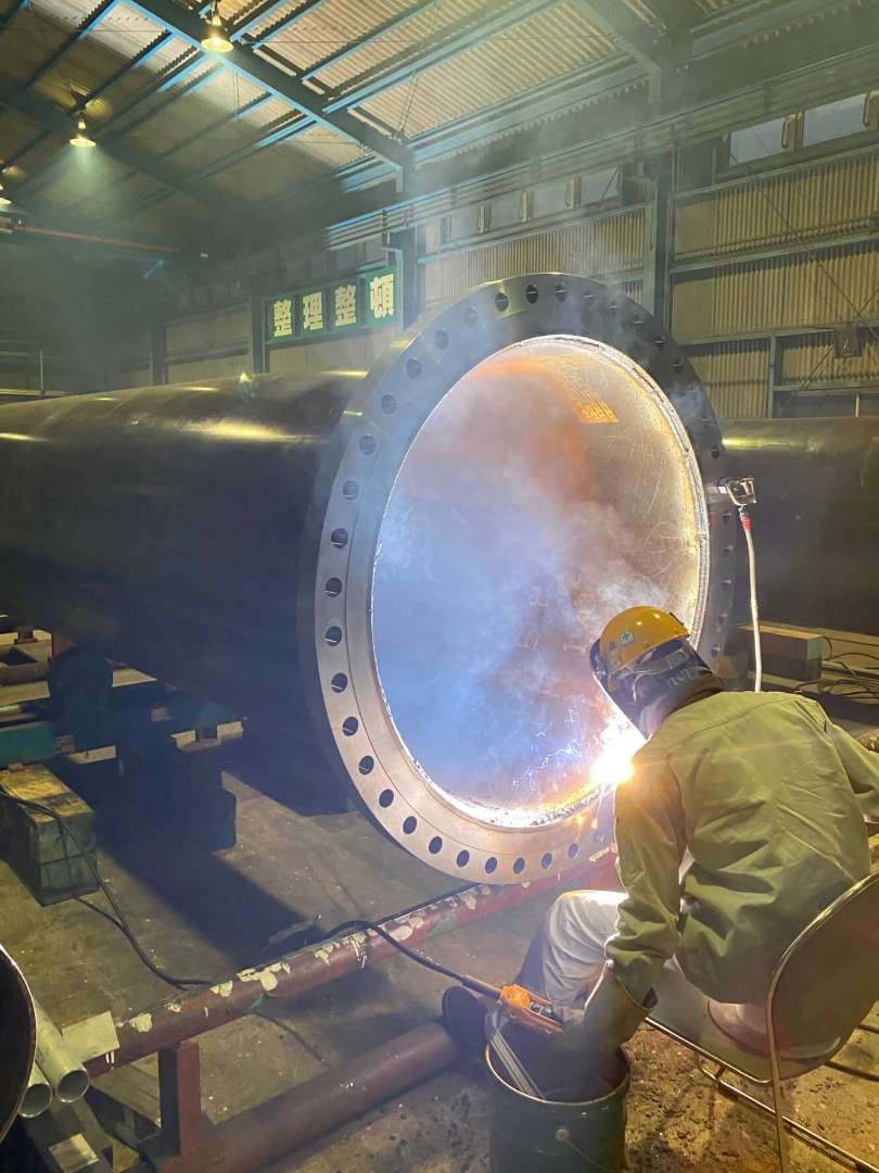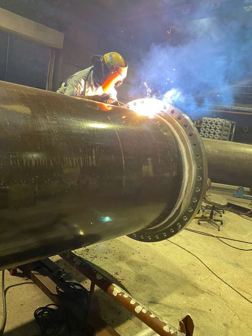大口径配管製作の溶接作業の様子です。